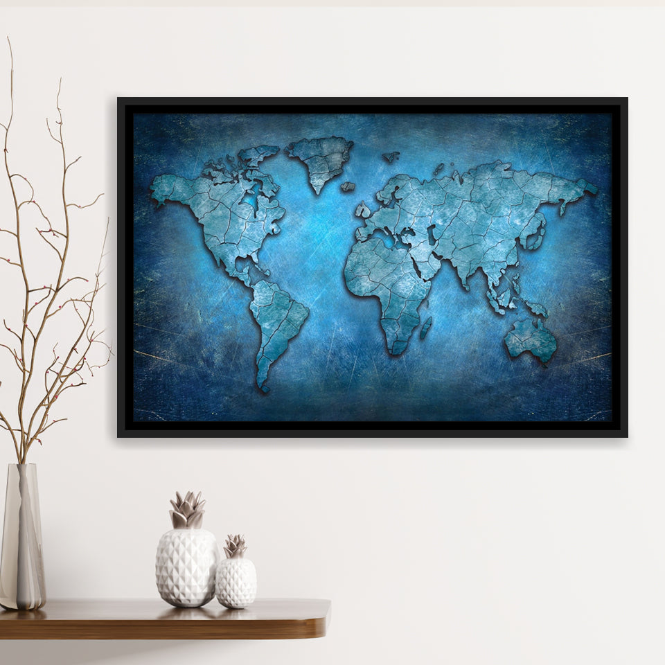 World Map Canvas Blue Abstract World Map Framed Canvas Prints Wall